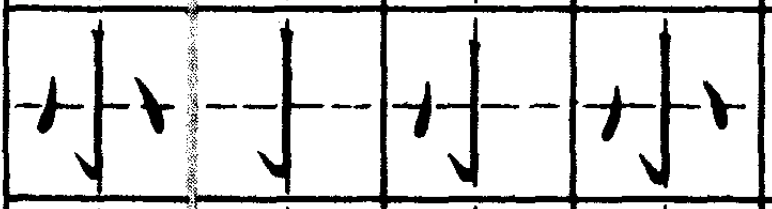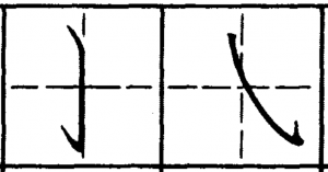 При написании черт с крюком следует обращать внимание, что черты пишутся одним росчерком (не отрывая ручки от бумаги). Угол черт с крюком должен быть острым.
